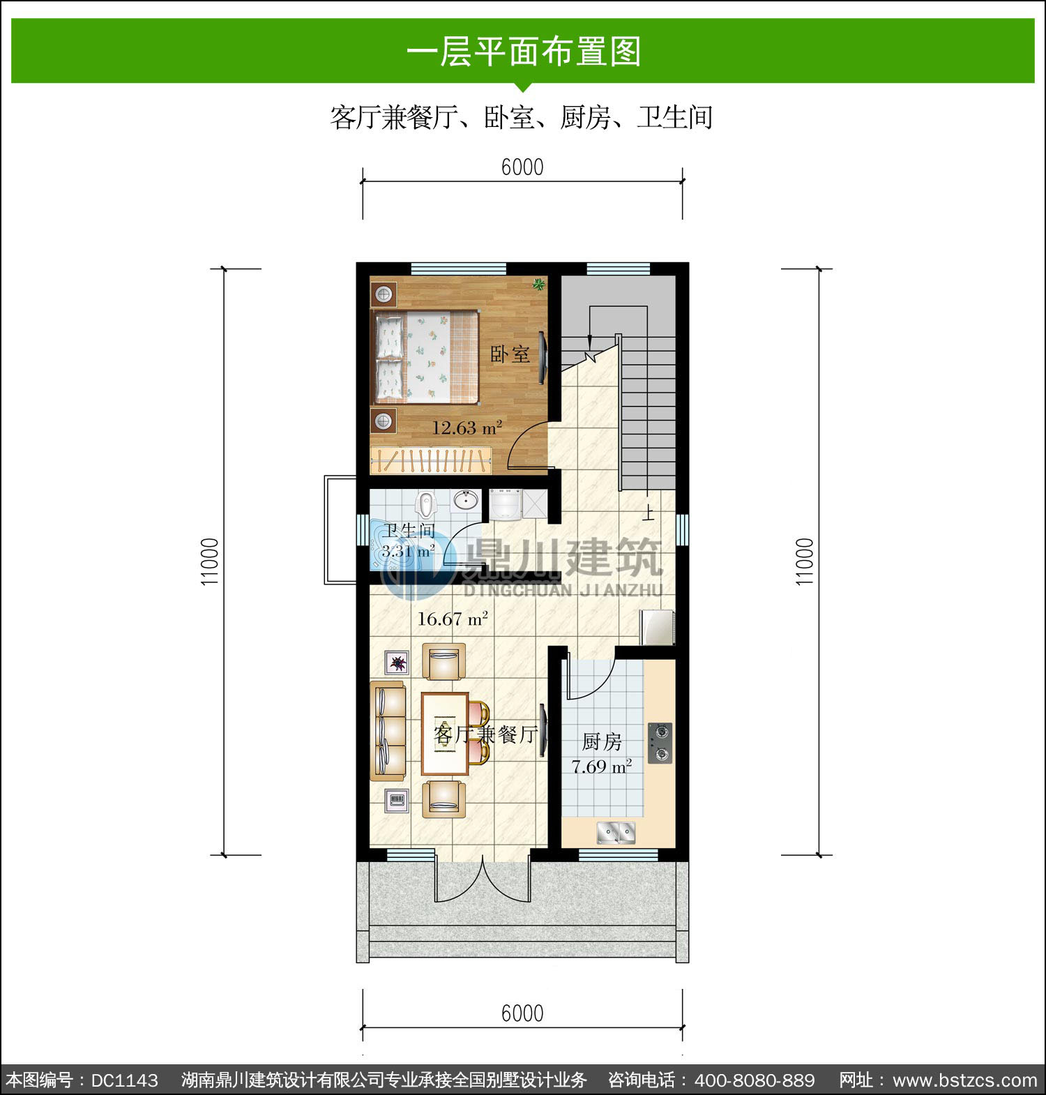 | 一 層: | 客廳兼餐廳、臥室、廚房、衛生間 | |||