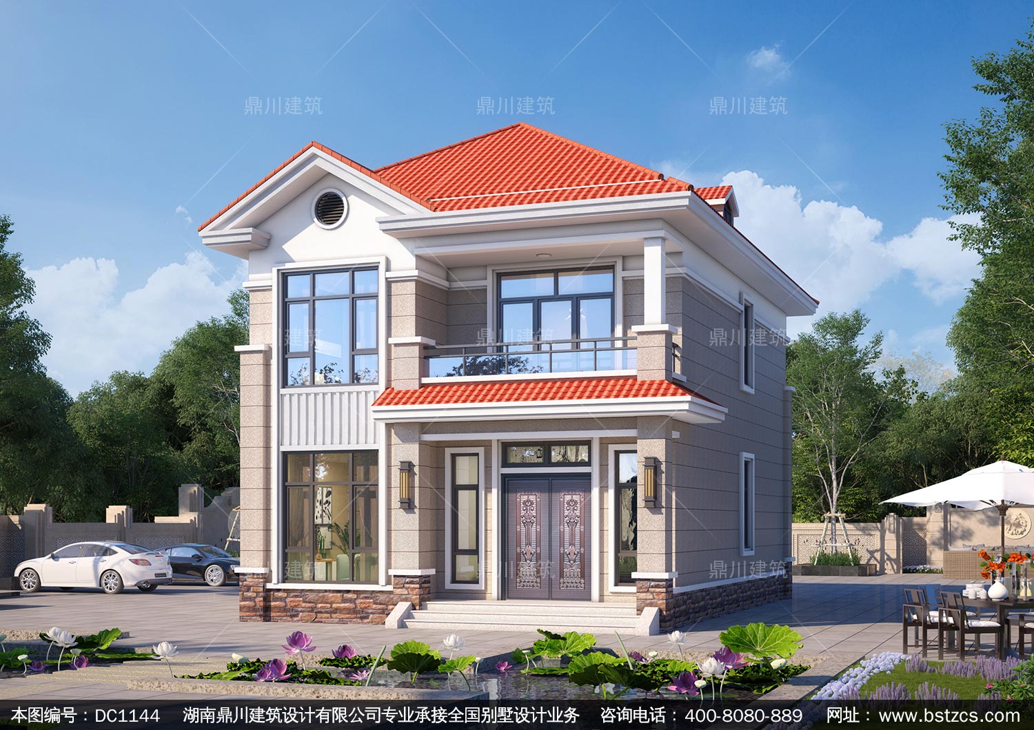 歐式二層帶露臺小戶型別墅圖紙及效果圖_農村自建房屋設計,鼎川