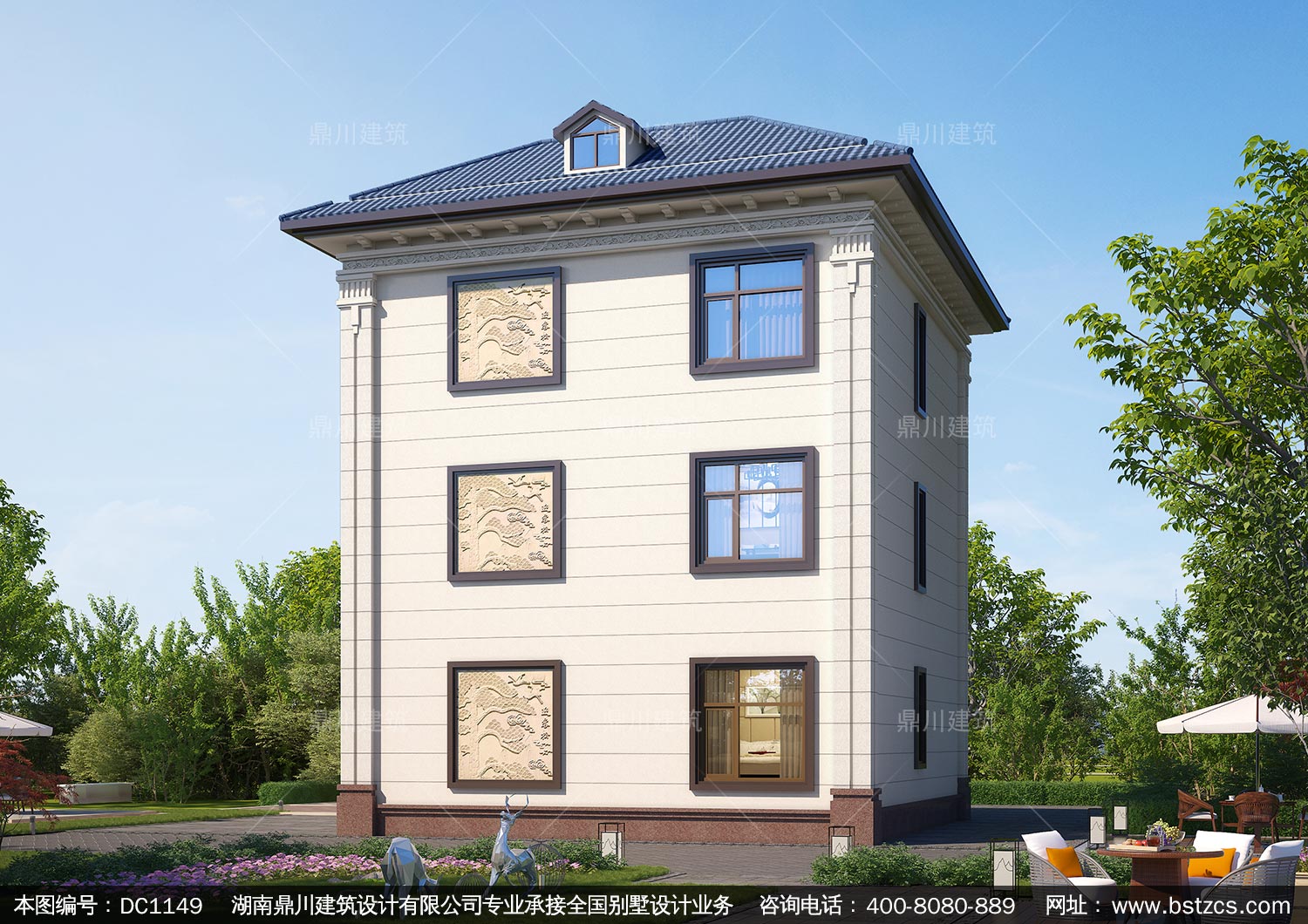 新中式三層帶露臺實用小別墅施工圖紙_農村自建房設計,鼎川建筑