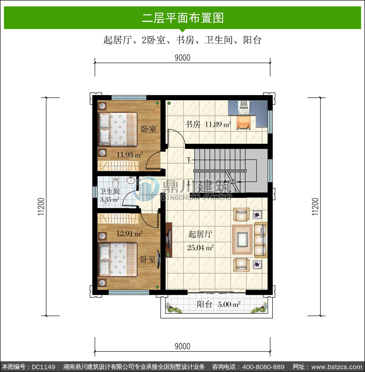| 二 層: | 起居廳、2臥室、書房、衛生間、陽臺 | |||