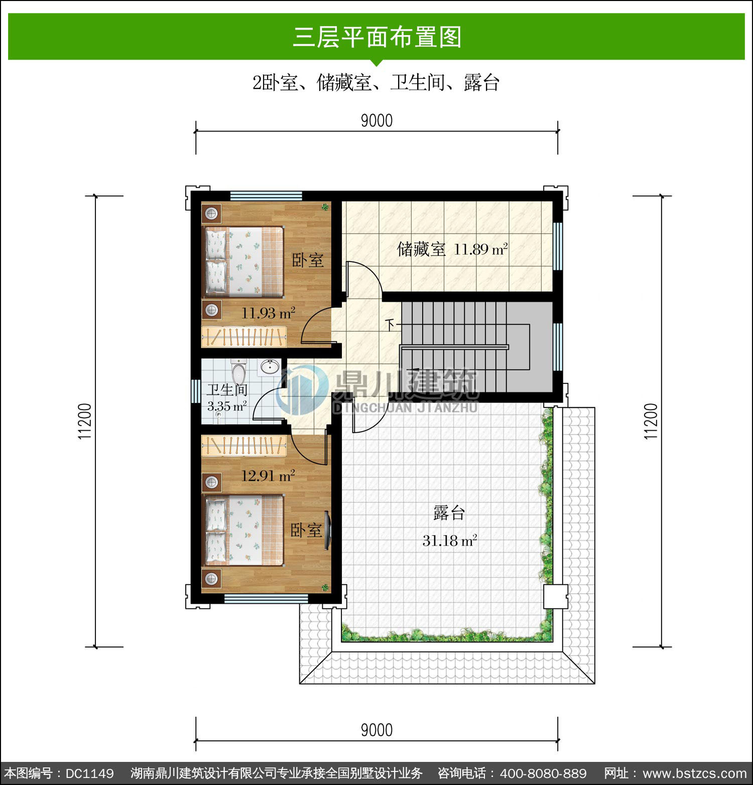 | 三 層: | 2臥室、儲藏室、衛生間、露臺 | |||
