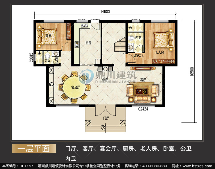 | 一 層: | 門廳、客廳、宴會廳、廚房、老人房、臥室、公衛、內衛 | |||