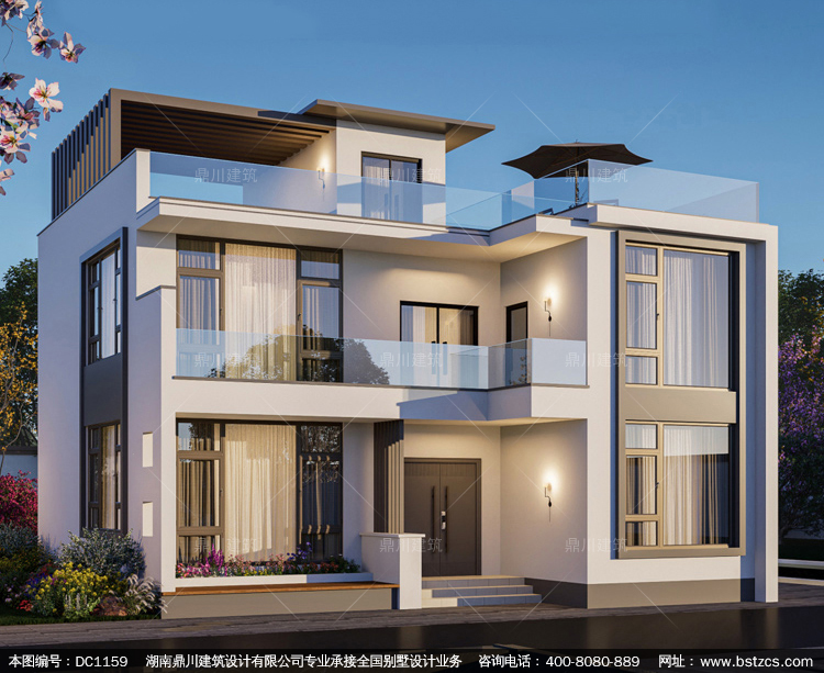 現代二層平頂別墅圖紙及外觀效果圖_新農村自建別墅設計,鼎川建
