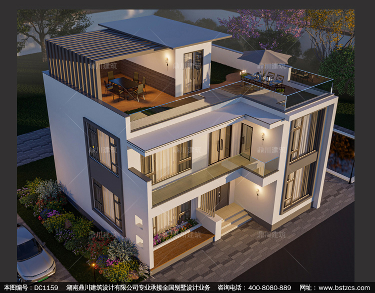 現代二層平屋頂別墅圖紙及外觀效果圖_新農村自建別墅設計,鼎川建筑