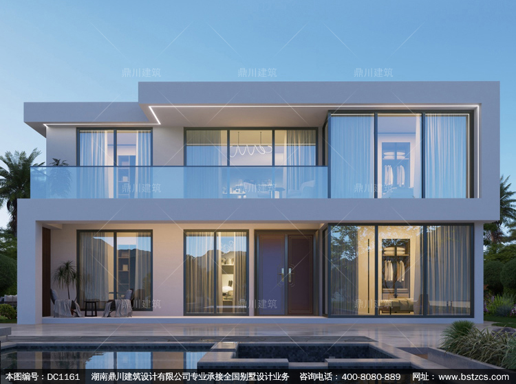 二層現代平屋頂別墅施工圖紙及效果圖_農村自建別墅設計,鼎川建