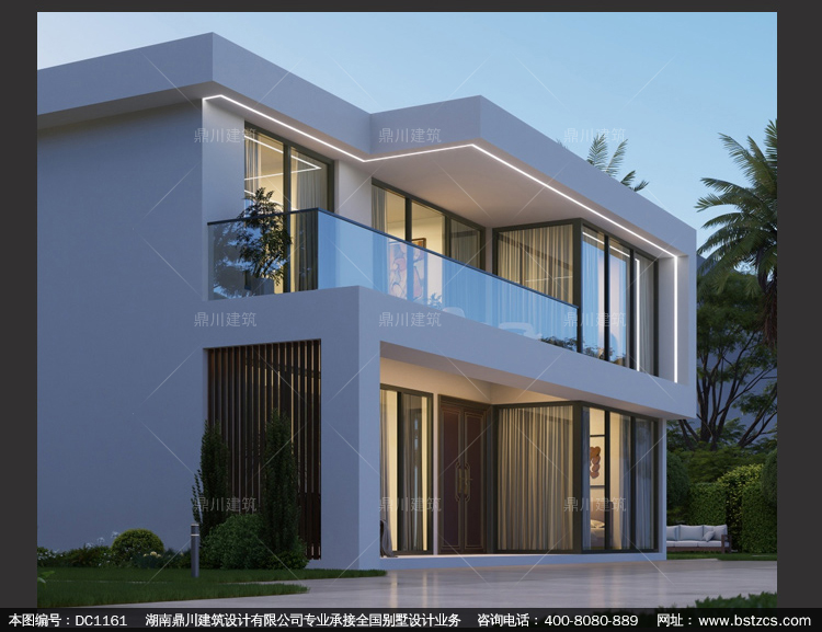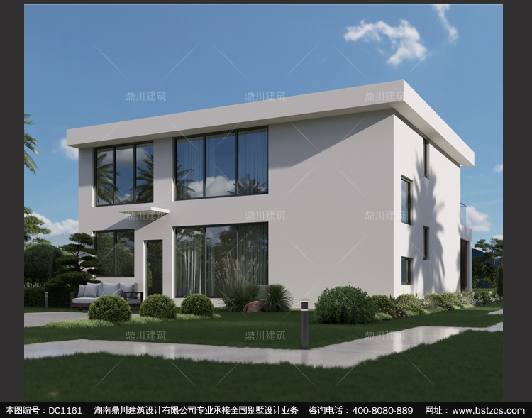 現代二層平頂別墅圖紙及外觀效果圖_新農村自建別墅設計,鼎川建