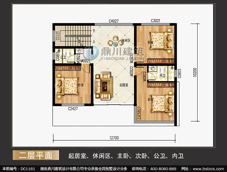 | 二 層: | 起居室、休閑區、主臥、次臥、公衛、內衛 | |||