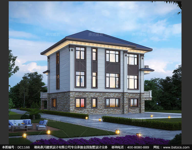 新中式三層復式別墅施工圖紙及效果圖_農村自建別墅設計,鼎川建