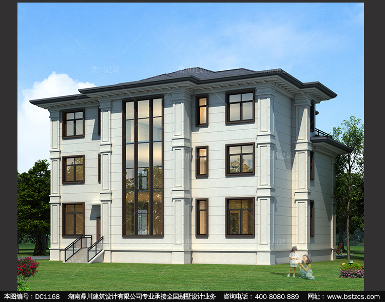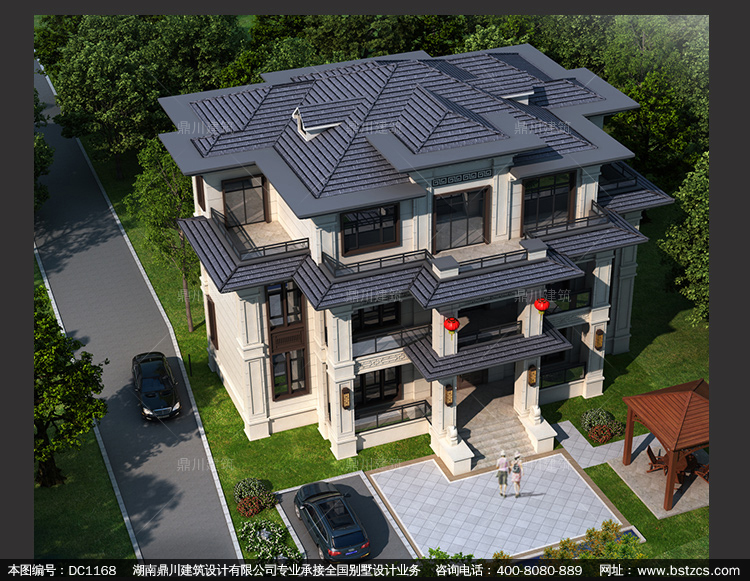 新中式三層帶旋轉(zhuǎn)樓梯別墅圖紙及效果圖_新農(nóng)村自建別墅設(shè)計,鼎川建筑