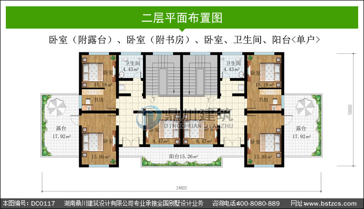 | 二 層: | 臥室(附露臺)、臥室(附書房)、臥室、衛生間、陽臺 | |||