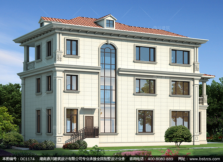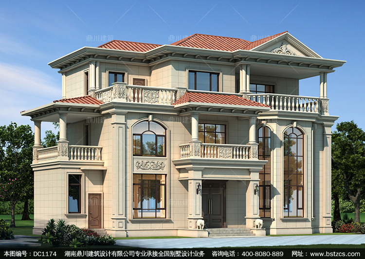 大氣歐式三層復式別墅圖紙及效果圖_農(nóng)村自建別墅設計,鼎川建筑