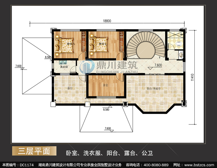 三層復式帶旋轉(zhuǎn)樓梯別墅圖紙及外觀效果圖_農(nóng)村自建別墅設計,鼎