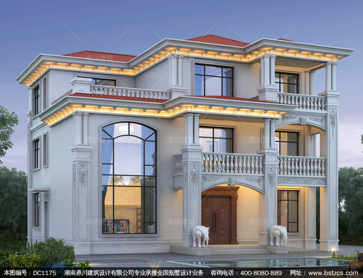 大氣歐式三層復式別墅圖紙及效果圖_農村自建別墅設計,鼎川建筑