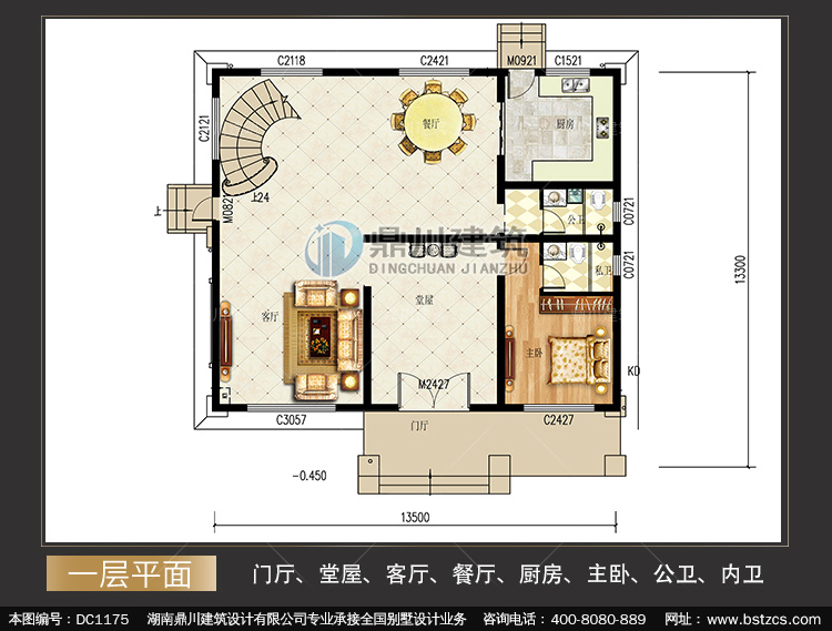 | 一 層: | 門廳、堂屋、客廳、餐廳、廚房、主臥、公衛、內衛 | |||