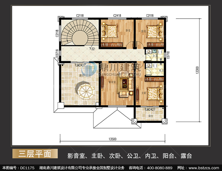 歐式三層帶露臺別墅施工圖紙及效果圖_鄉村自建別墅設計,鼎川建