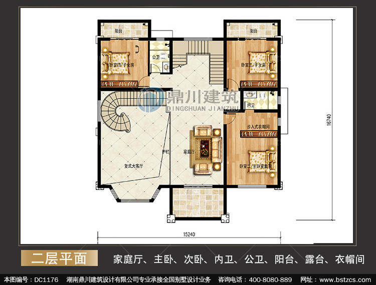 三層帶旋轉(zhuǎn)樓梯復式別墅圖紙及效果圖_新農(nóng)村自建別墅設計,鼎川建筑