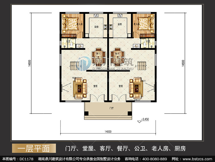 | 一 層: | 門廳、堂屋、客廳、餐廳、公衛、老人房、廚房 | |||