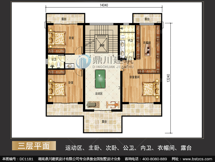 新中式三層復式別墅施工圖紙及效果圖_農村自建別墅設計,鼎川建