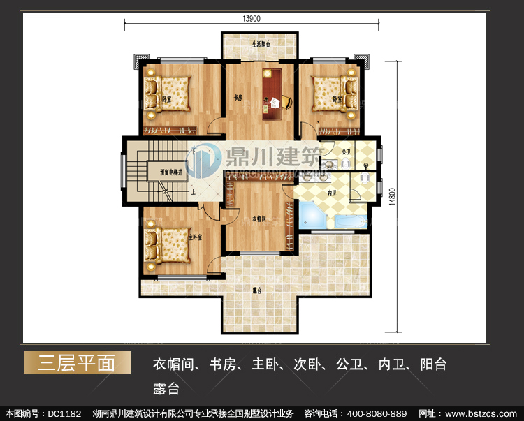 | 三 層: | 衣帽間、書房、主臥、次臥、公衛、內衛、陽臺、露臺 | |||