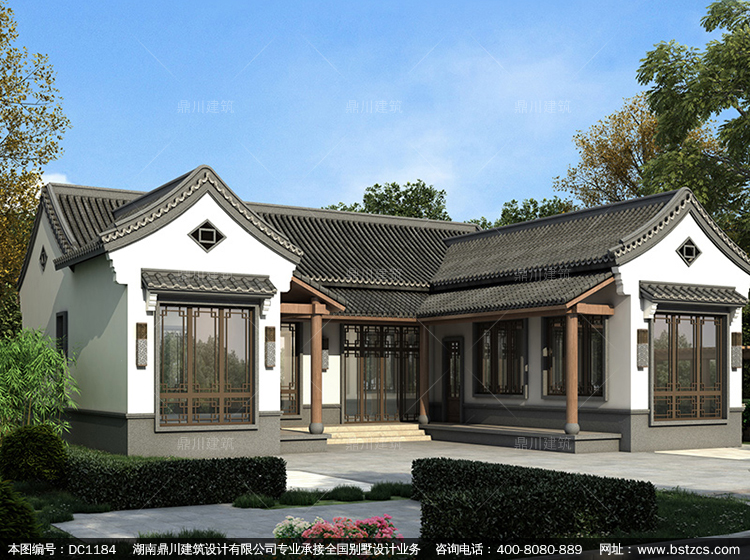 中式一層合院施工圖紙及效果圖_新農(nóng)村一層自建別墅設(shè)計(jì),鼎川建筑