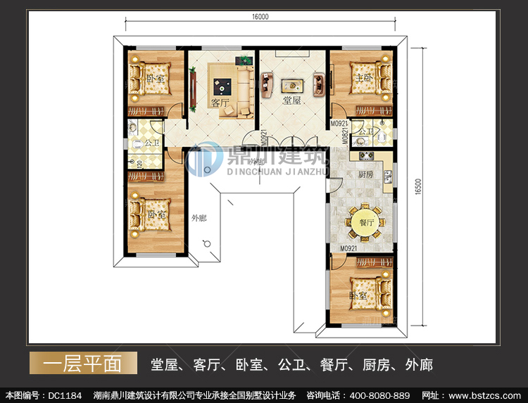 | 一 層: | 堂屋、客廳、臥室、公衛(wèi)、餐廳、廚房、外廊 | |||