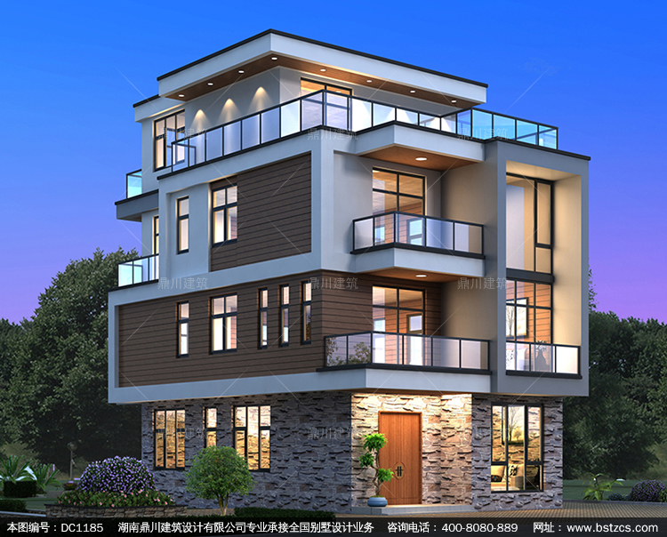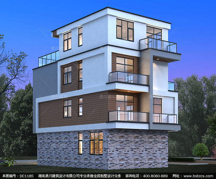 三層現代風格別墅圖紙及效果圖_新農村自建別墅設計,鼎川建筑