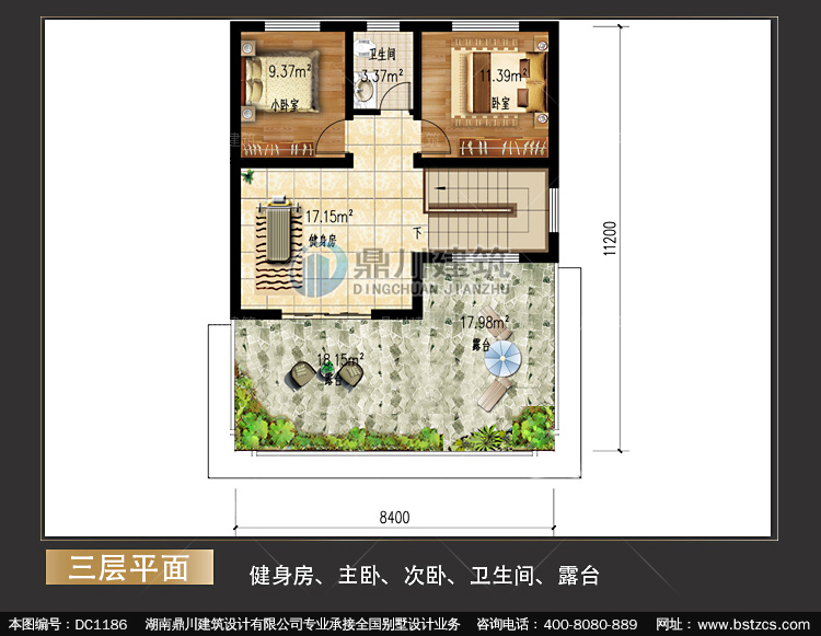 | 三 層: | 健身房、主臥、次臥、衛(wèi)生間、露臺(tái) | |||