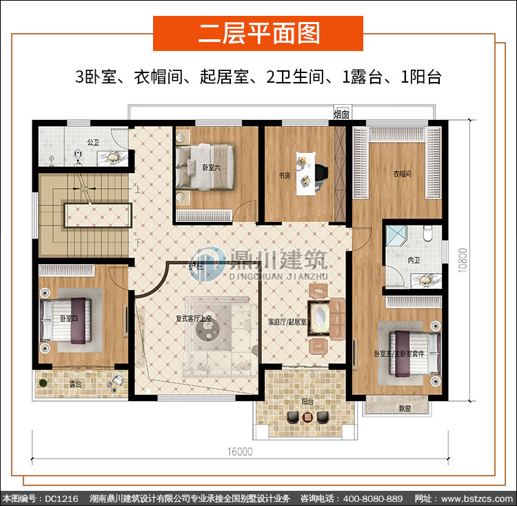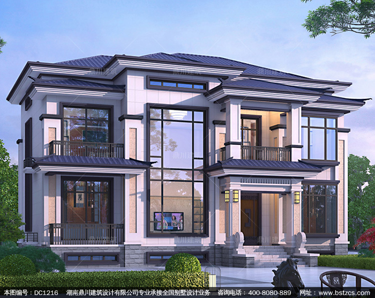 新中式二層復式別墅效果圖及施工圖紙_農村自建別墅設計,鼎川建
