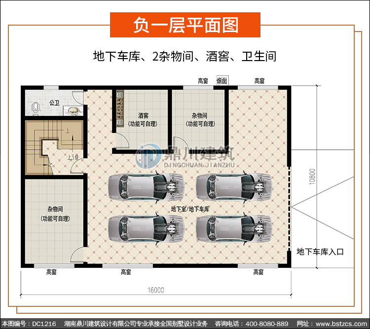| 負一層: | 地下車庫、2雜物間、酒窖、衛生間 | |||