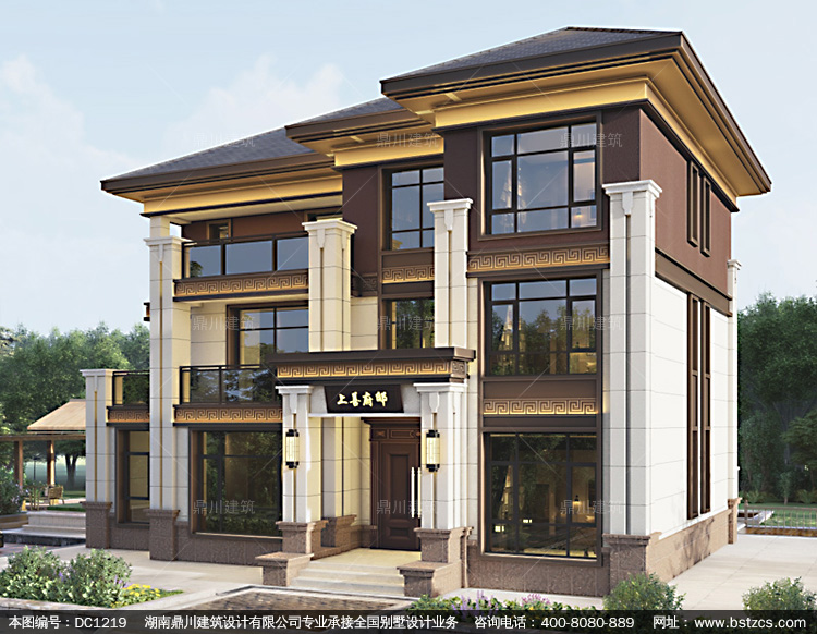 大氣新中式三層別墅設計圖紙及效果圖_農村自建別墅設計,鼎川建