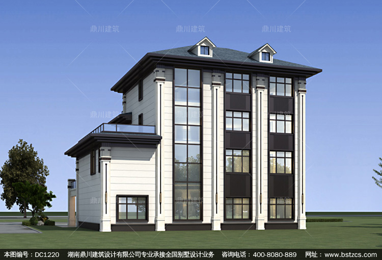 大氣的新中式三層帶車庫別墅圖紙及效果圖_農村別墅設計,鼎川建