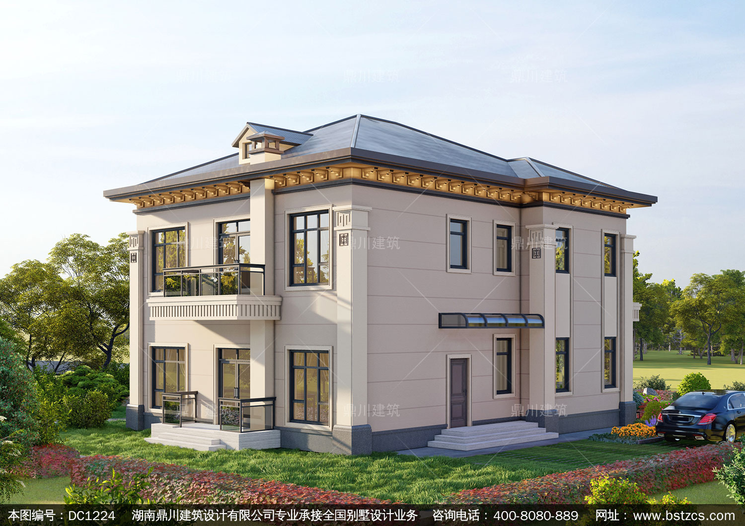 新中式二層別墅圖紙及外觀效果圖_農村自建別墅設計,鼎川建筑
