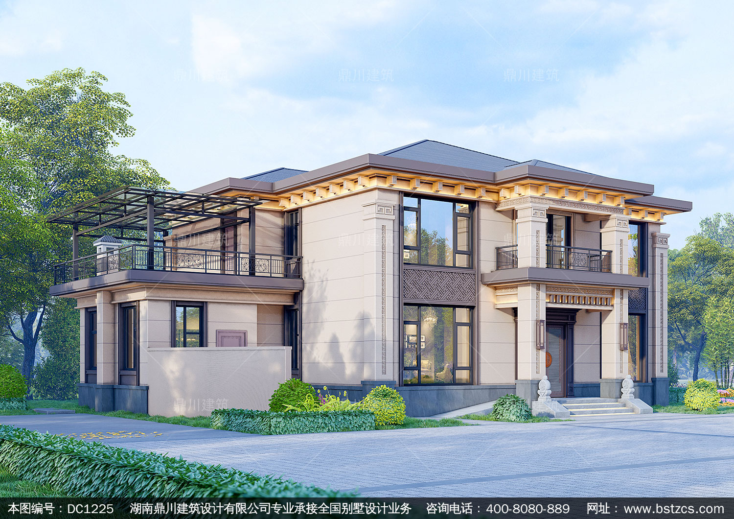 新中式二層復式別墅效果圖及施工圖紙_農村自建別墅設計,鼎川建
