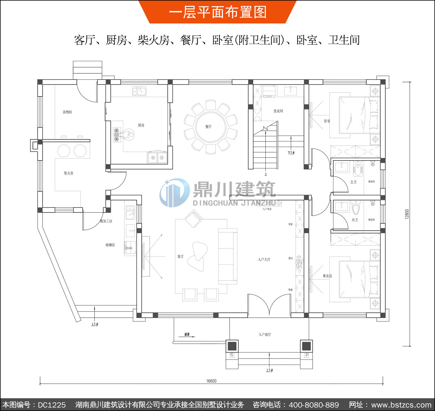 | 一 層: | 客廳、廚房、柴火房、餐廳、臥室(附衛生間)、臥室、衛生間 | |||