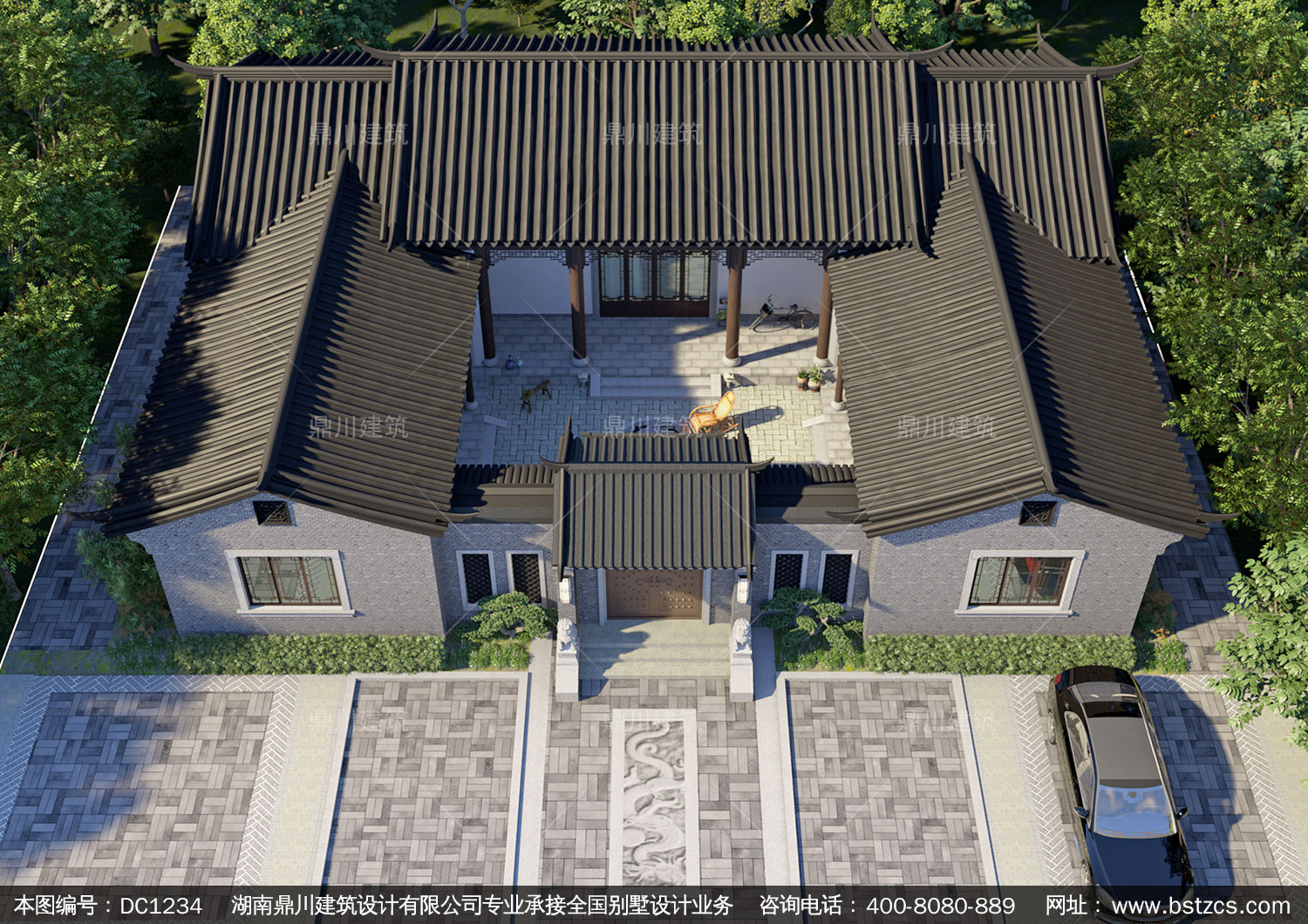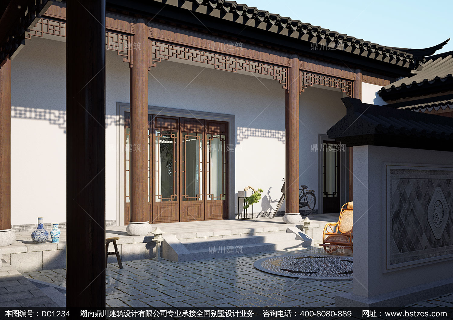 中式一層合院施工圖紙及效果圖_新農村一層自建別墅設計,鼎川建