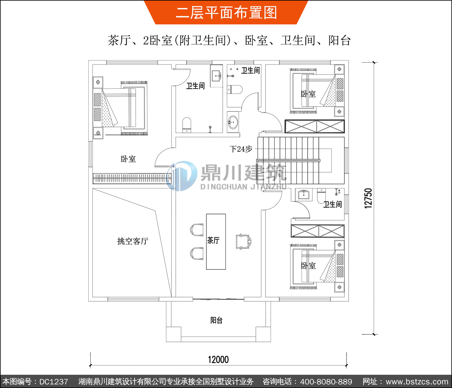 | 二 層: | 茶廳、2臥室(附衛生間)、臥室、衛生間、陽臺 | |||