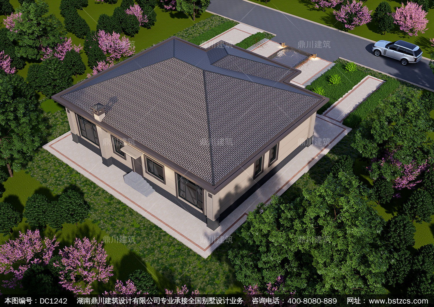 新中式一層別墅施工圖紙及效果圖_農(nóng)村自建別墅設(shè)計,鼎川建筑