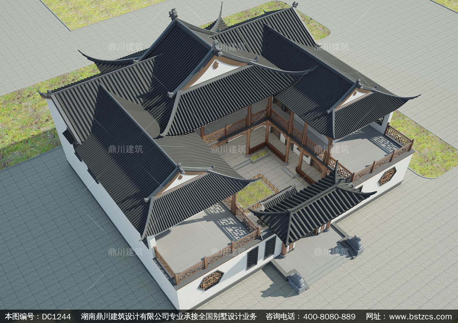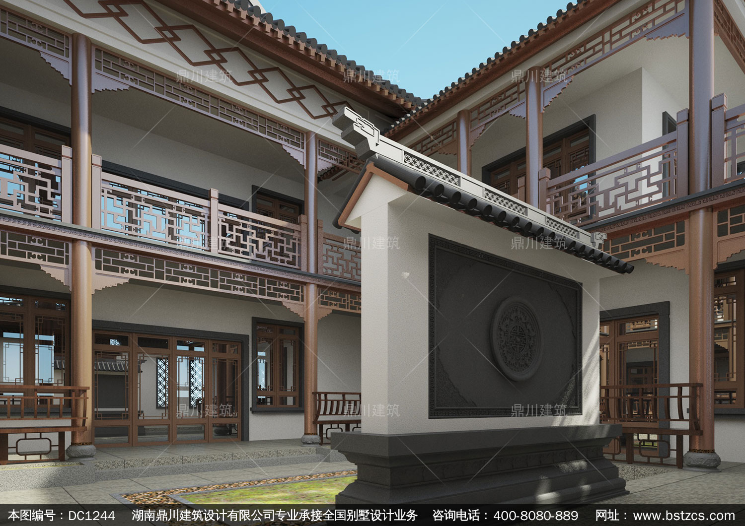 大氣二層中式四合院別墅圖紙及效果圖_新農村四合院設計,鼎川建
