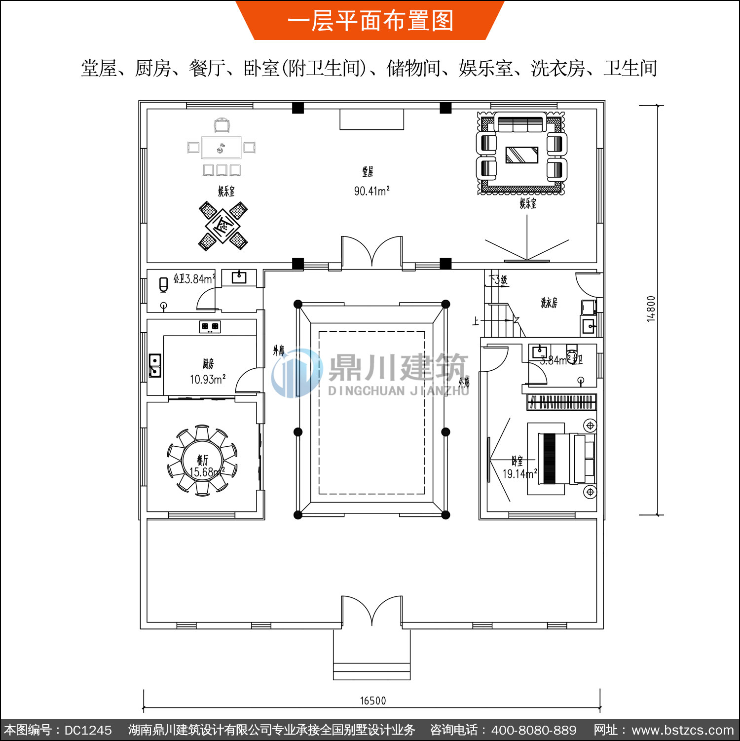 | 一 層: | 堂屋、廚房、餐廳、臥室(附衛生間)、儲物間、娛樂室、洗衣房、衛生間 | |||