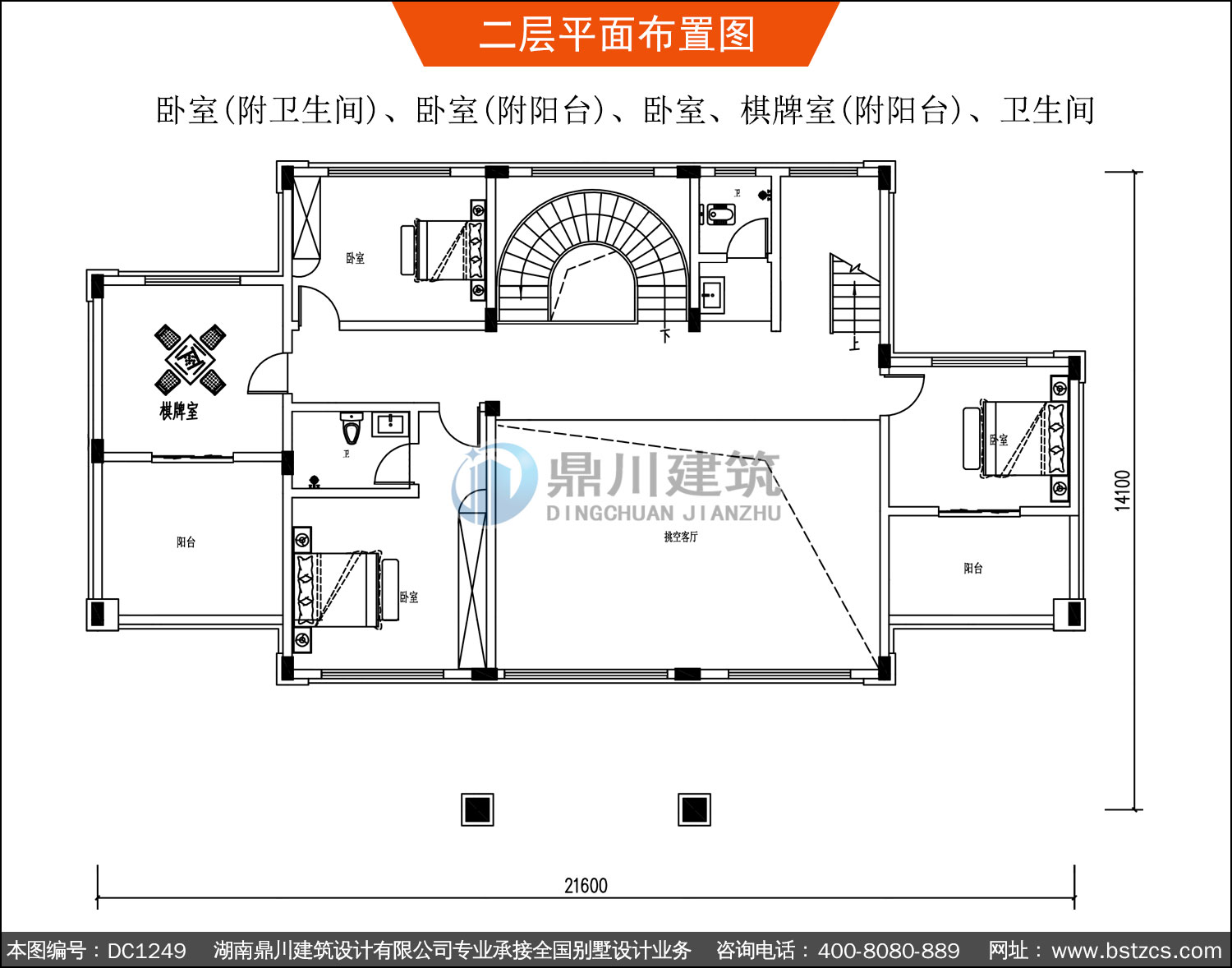 | 二 層: | 臥室(附衛(wèi)生間)、臥室(附陽(yáng)臺(tái))、臥室、棋牌室(附陽(yáng)臺(tái))、衛(wèi)生間 | |||