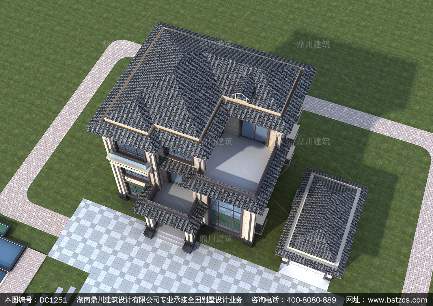 新中式三層復式別墅圖紙及效果圖_新農村自建別墅設計,鼎川建筑