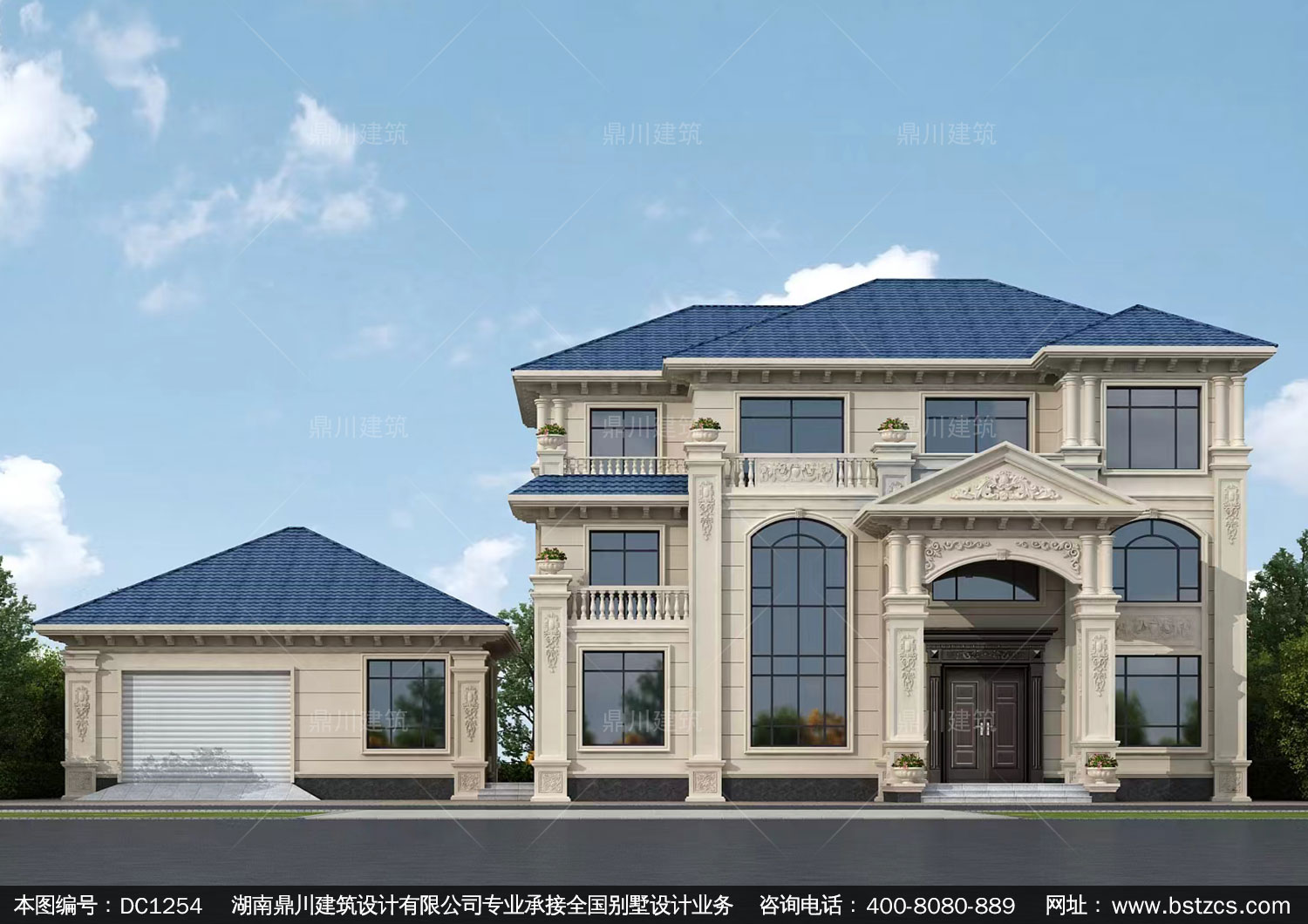 三層簡歐帶車庫別墅圖紙及效果圖_新農村自建別墅設計,鼎川建筑