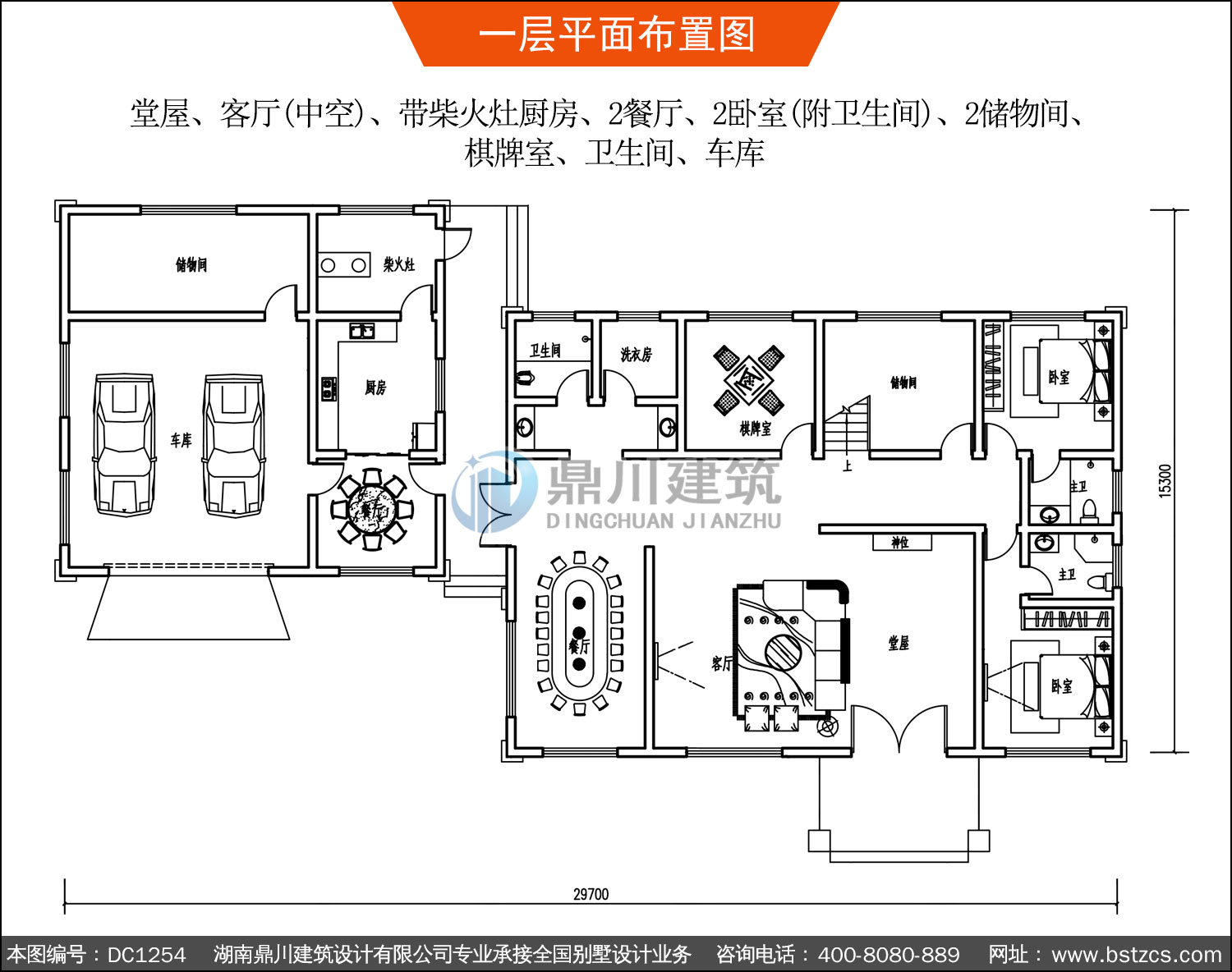 | 一 層: | 堂屋、客廳(中空)、帶柴火灶廚房、2餐廳、2臥室(附衛生間)、2儲物間、 棋牌室、衛生間、車庫 | |||