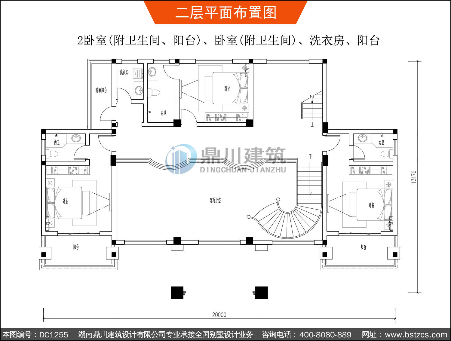 大氣新中式三層帶旋轉樓梯別墅施工圖紙及效果圖_農村自建別墅設計,鼎川建筑