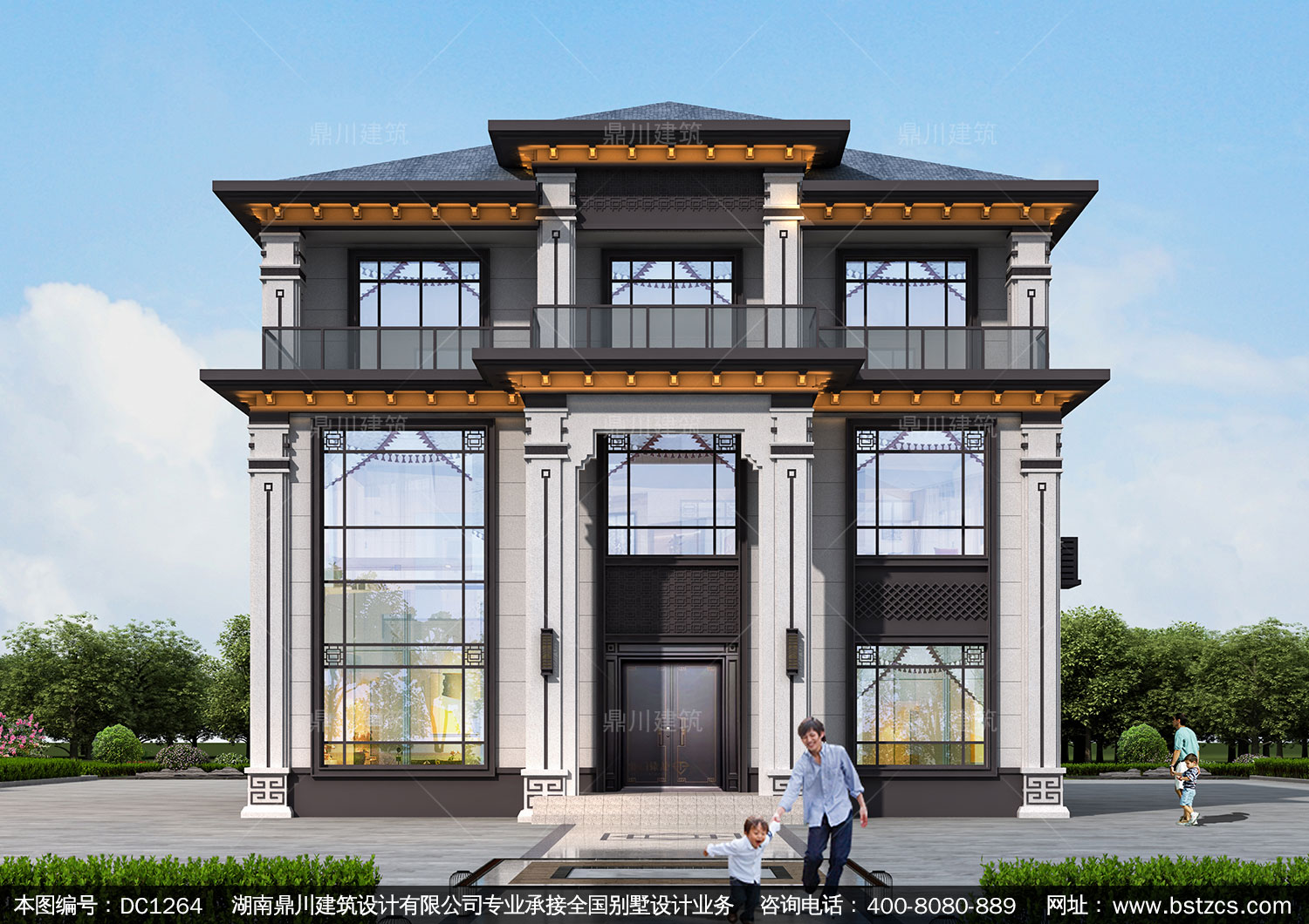 大氣三層新中式別墅設計圖紙及效果圖_農村自建別墅設計,鼎川建