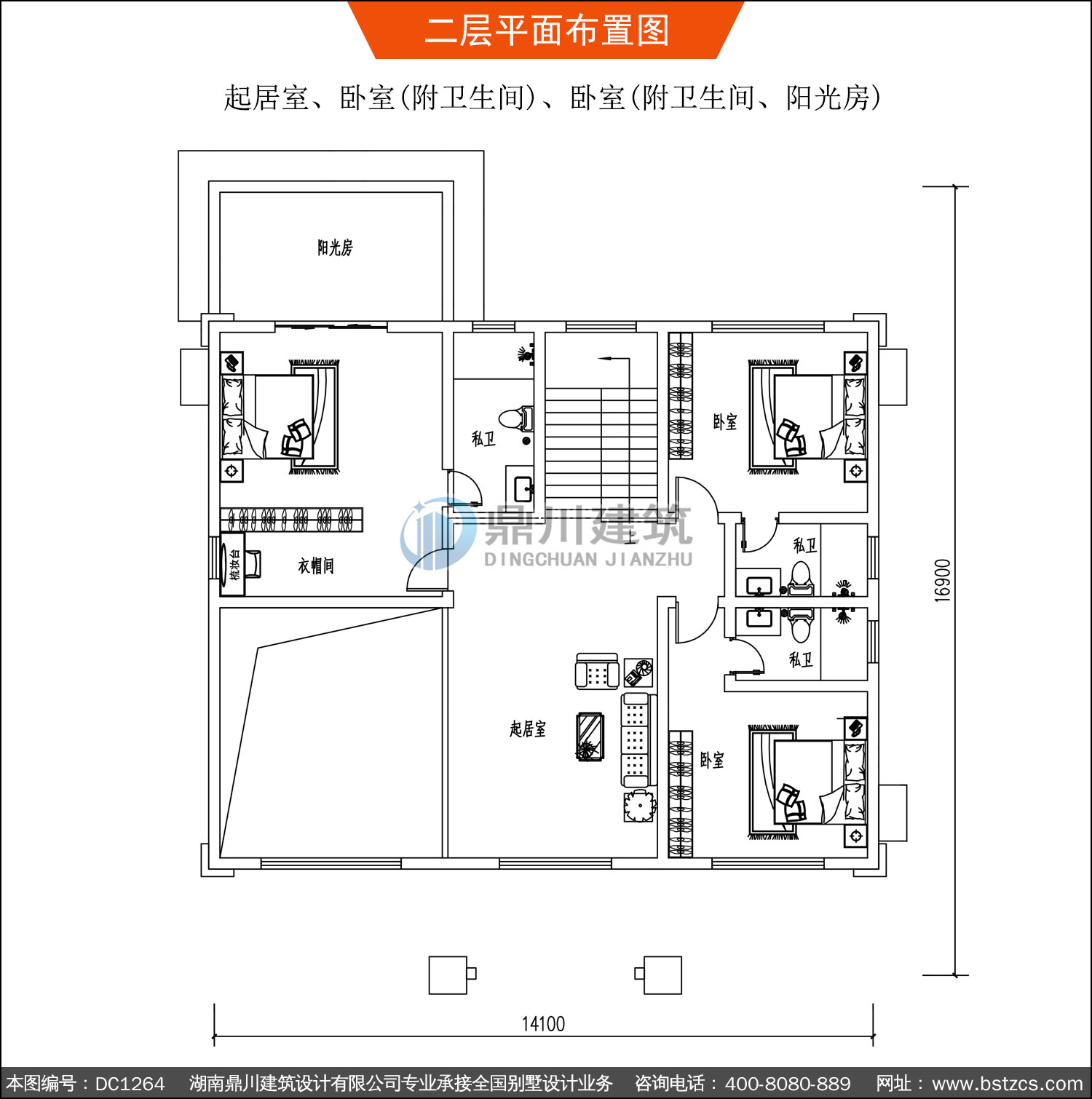 | 二 層: | 起居室、臥室(附衛生間)、臥室(附衛生間、陽光房) | |||