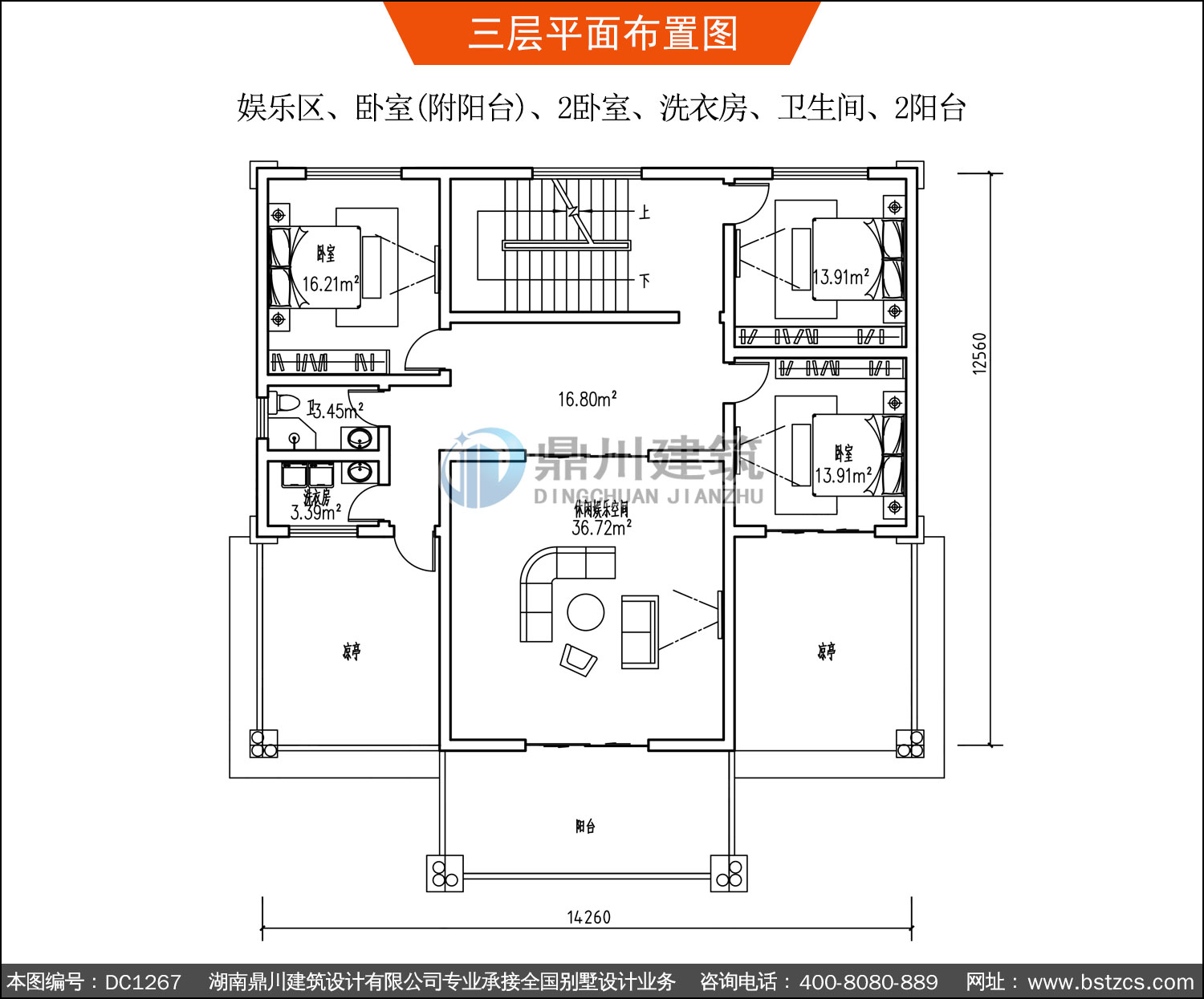 | 三 層: | 娛樂區(qū)、臥室(附陽臺(tái))、2臥室、洗衣房、衛(wèi)生間、2陽臺(tái) | |||
