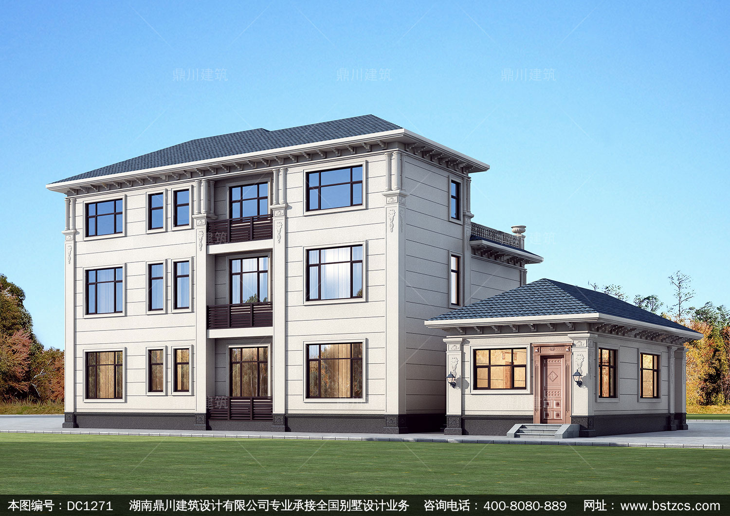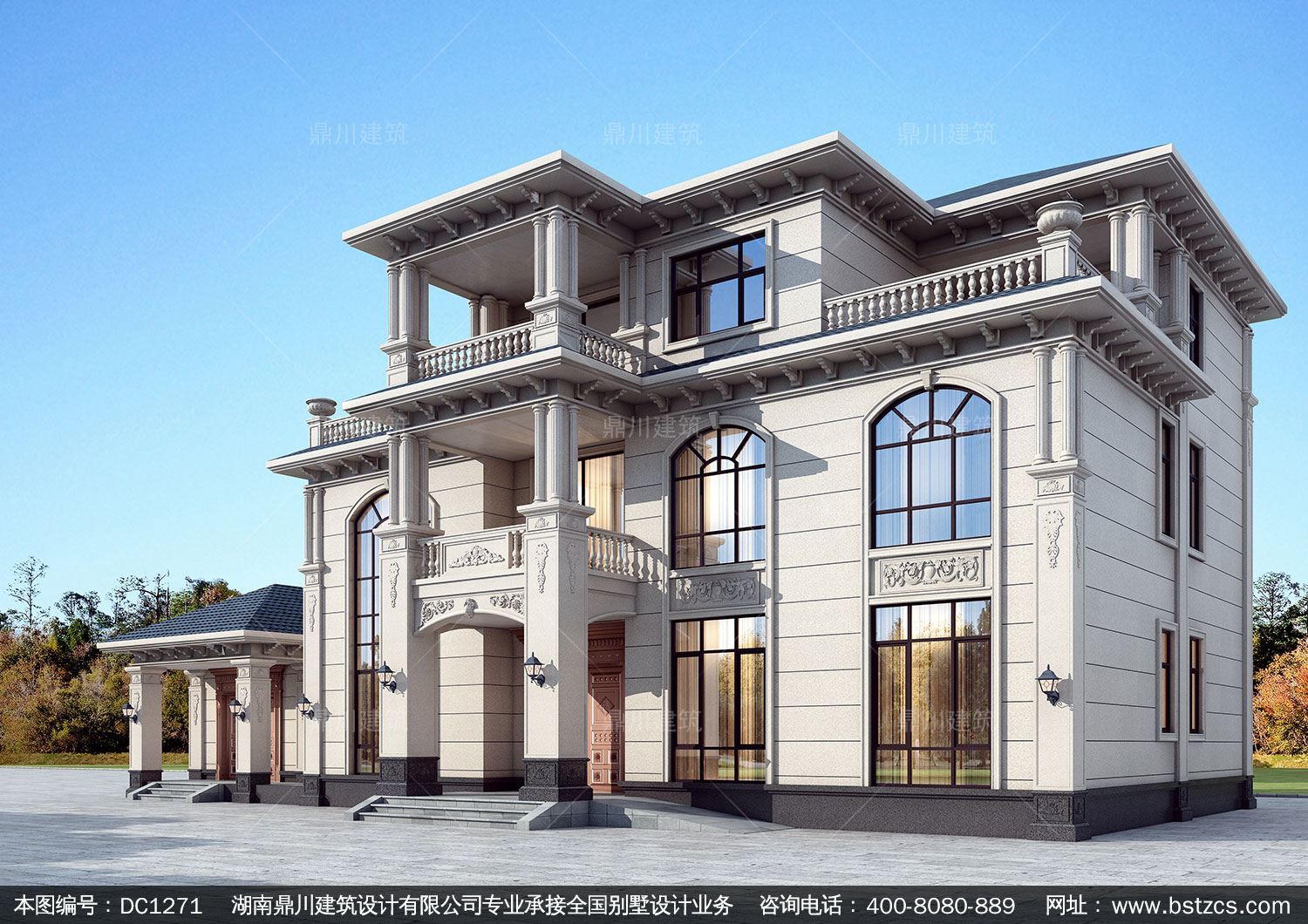 歐式三層帶車庫別墅施工圖紙及效果圖_農村自建別墅設計,鼎川建