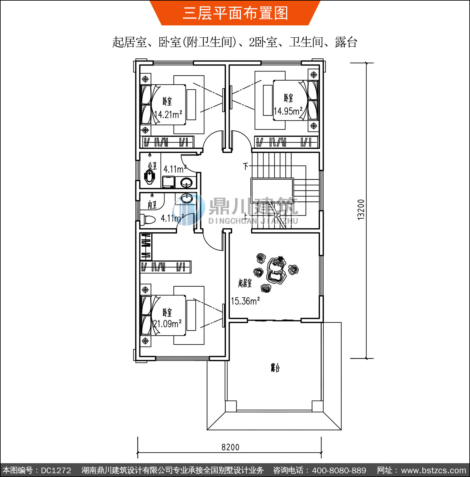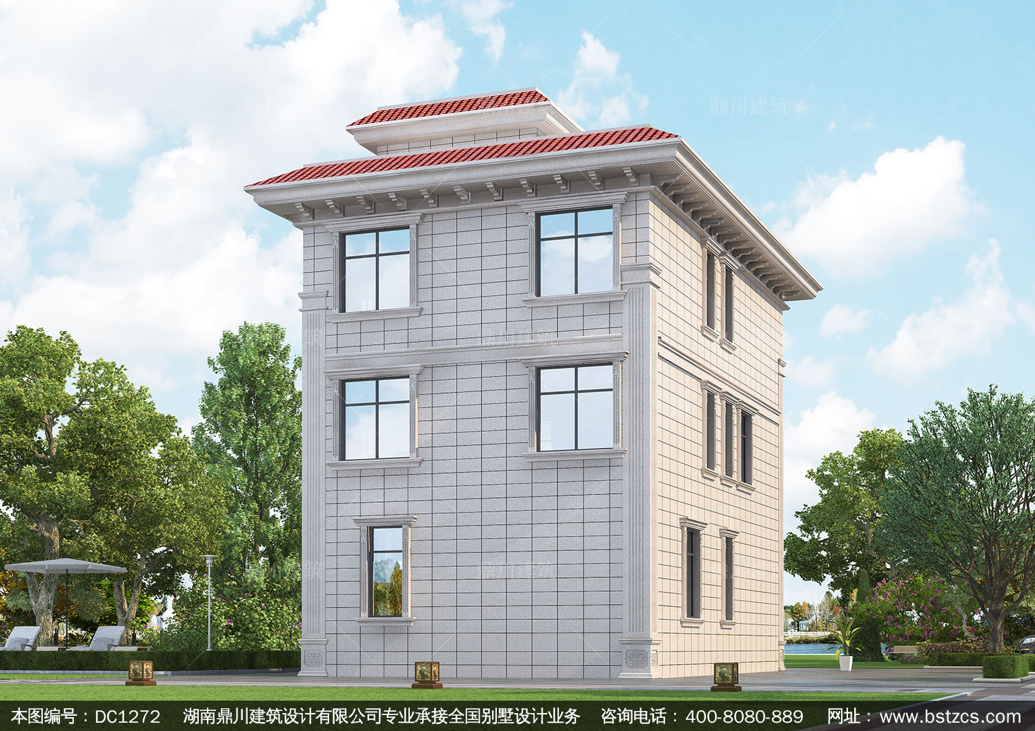 三層簡歐帶露臺小戶型別墅圖紙及效果圖_農村自建房設計,鼎川建