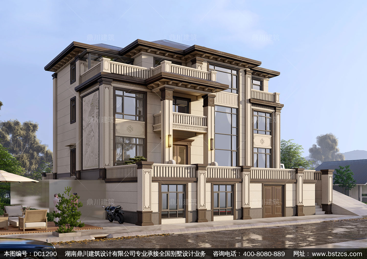 新中式三層帶架空層別墅施工圖紙及效果圖_農(nóng)村自建別墅設(shè)計,鼎川建筑